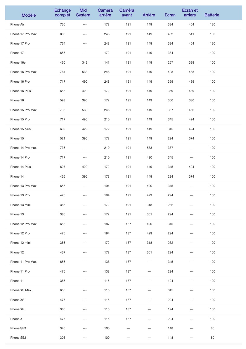 Les réparations iPhone se réalisent dans notre atelier par des techniciens agréés, des outils adaptés et des pièces originales Apple. La garantie offerte par Apple est de trois mois sur la pièce remplacée.